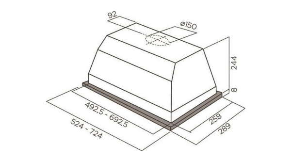 Η μέγιστη απορροφητική ισχύς είναι 647 m³/h, η οποία μπορεί να καλύψει ικανοποιητικά χώρους έως και 22 τετραγωνικά μέτρα (με ύψος 2,85 μέτρα).